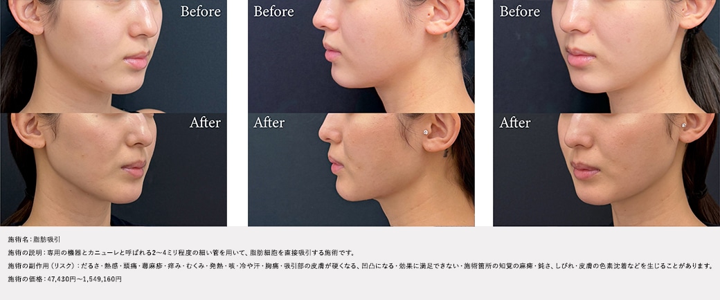 「ただ細くする」のではなく、将来的なたるみやバランスまで見据えて吸引範囲と量を調整しています。