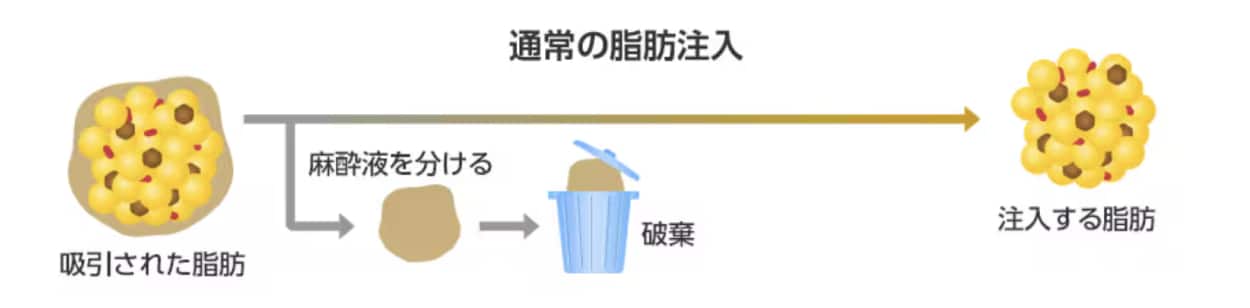ご自身の脂肪を注射器で採取するまでは同じ。その後の工程に違いがあります。