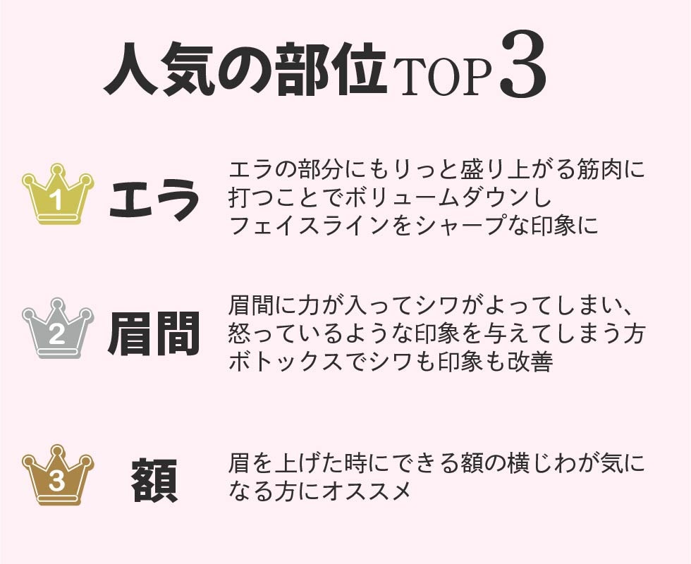 1位 エラ 発達したエラの筋肉のボリュームダウンをすることでフェイスラインをシャープな印象にしてくれます