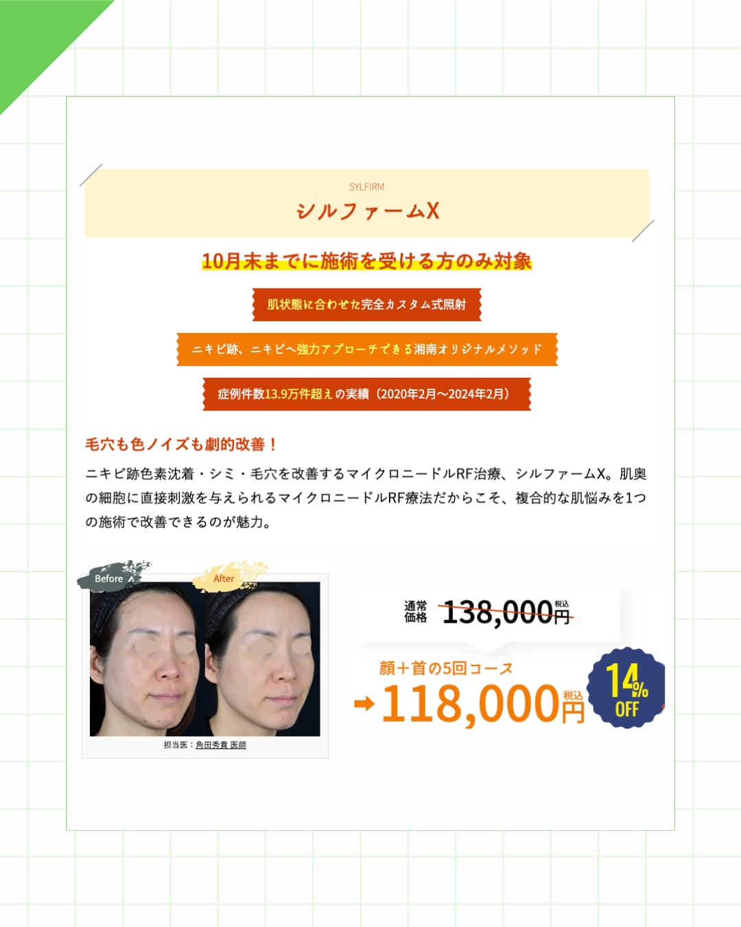 複合的なお肌悩みを改善できるマイクロニードルRF治療。