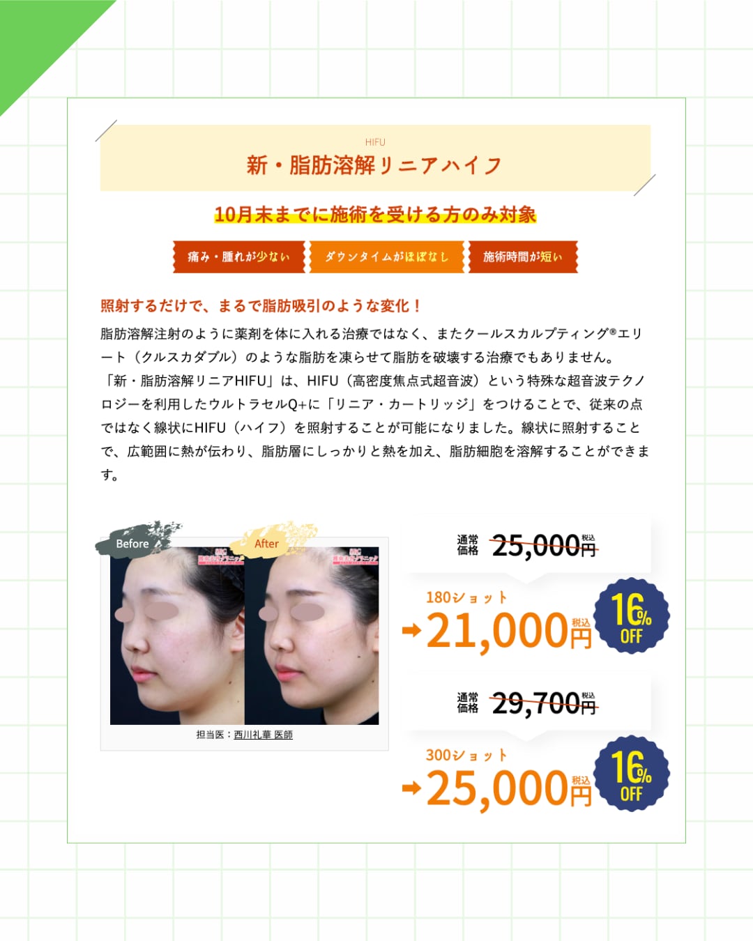 ダウンタイムなしでスッキリ小顔になりたいあなたにおすすめ。