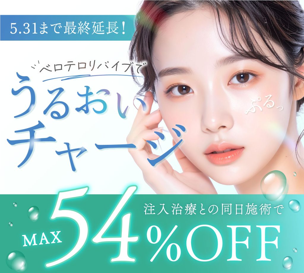医師による注入治療と同日施術で最大54%OFFに🉐