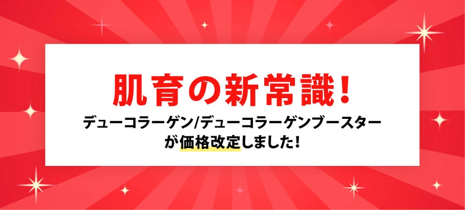 高品質なコラーゲン治療として人気!デューコラーゲンはもっと受けやすい価格へ、デューコラーゲンブースターは製剤増量につき価格改定いたしました!