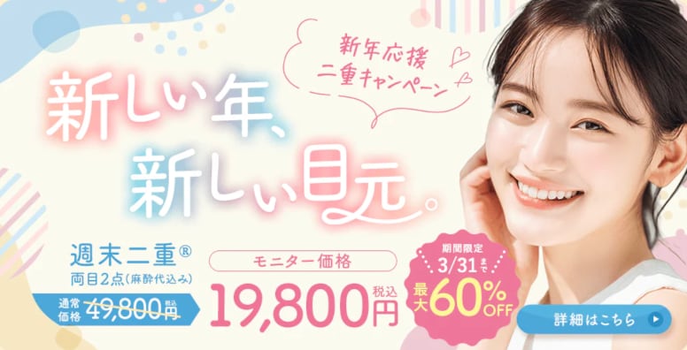 3月末までに施術を受けられる方限定【週末二重】最大60%OFF
