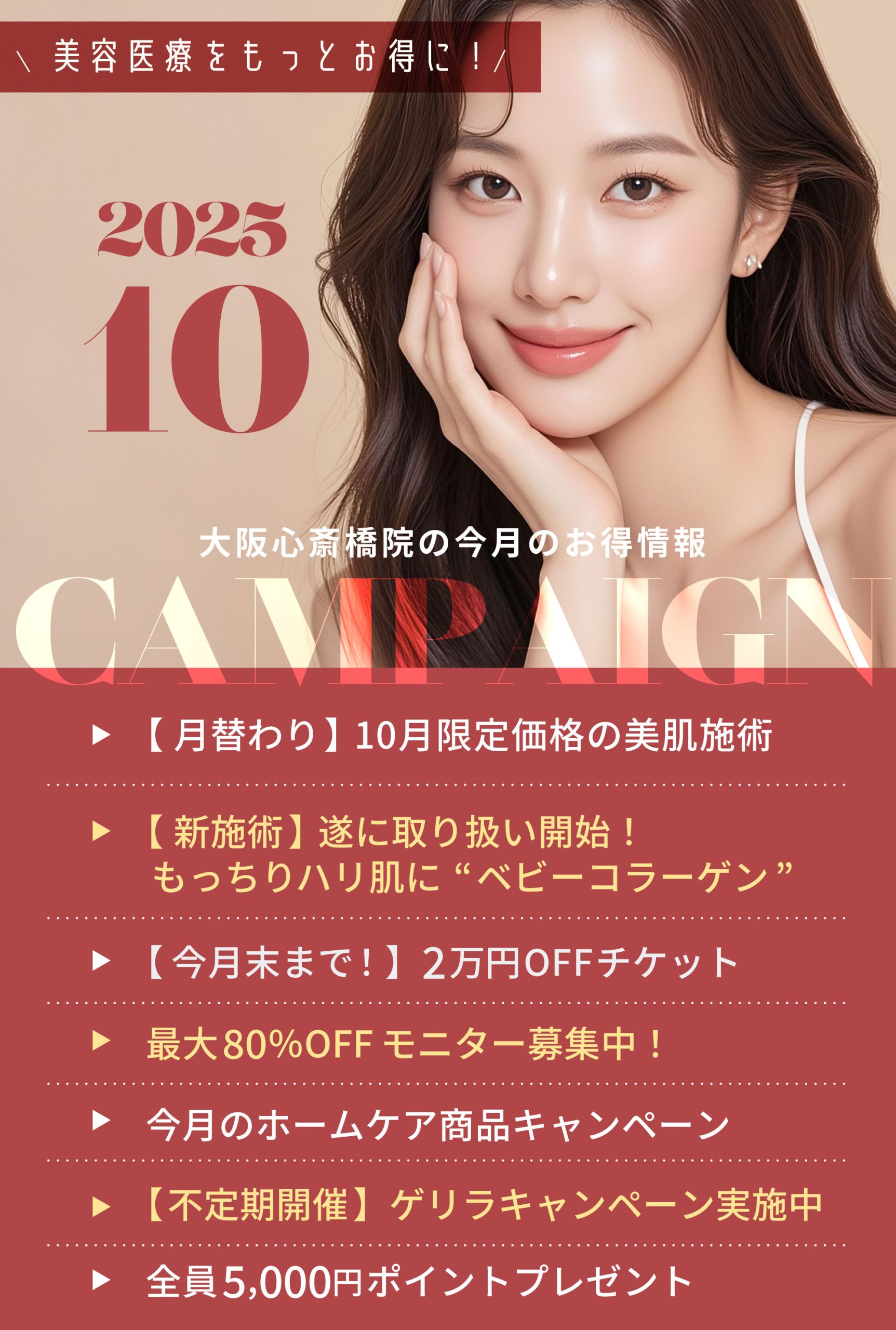 10月の大阪心斎橋院お得情報!今月のキャンペーン&モニター募集も要チェックです