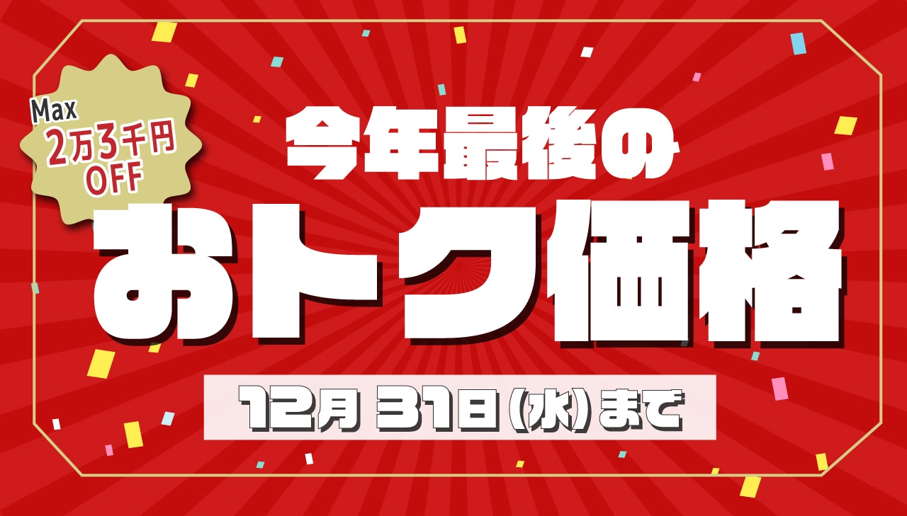 《 残り12日 》今月ラストのお得価格、見逃さないで!