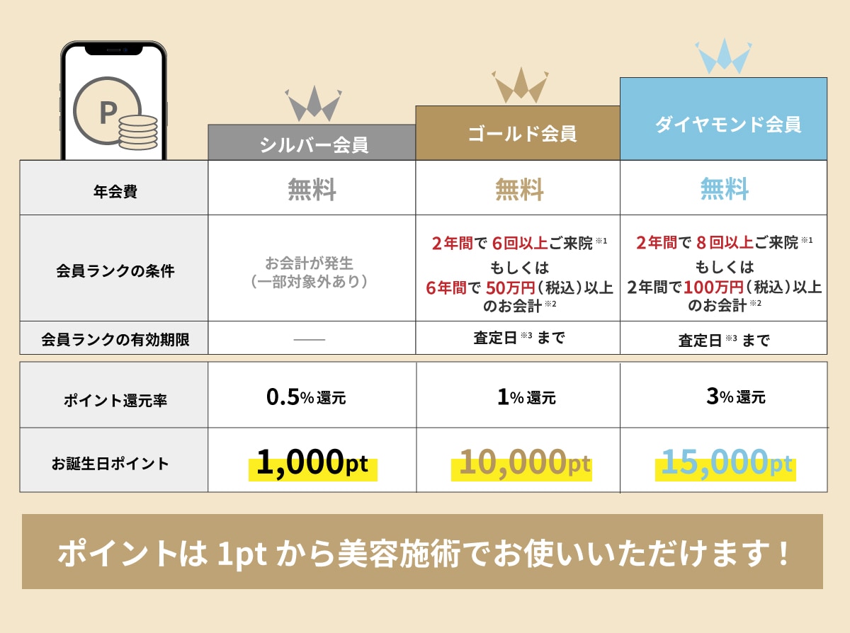 ポイント・チケット値引き前のお会計額が3万円(税込)以上の場合、ご来院1回とカウントします。