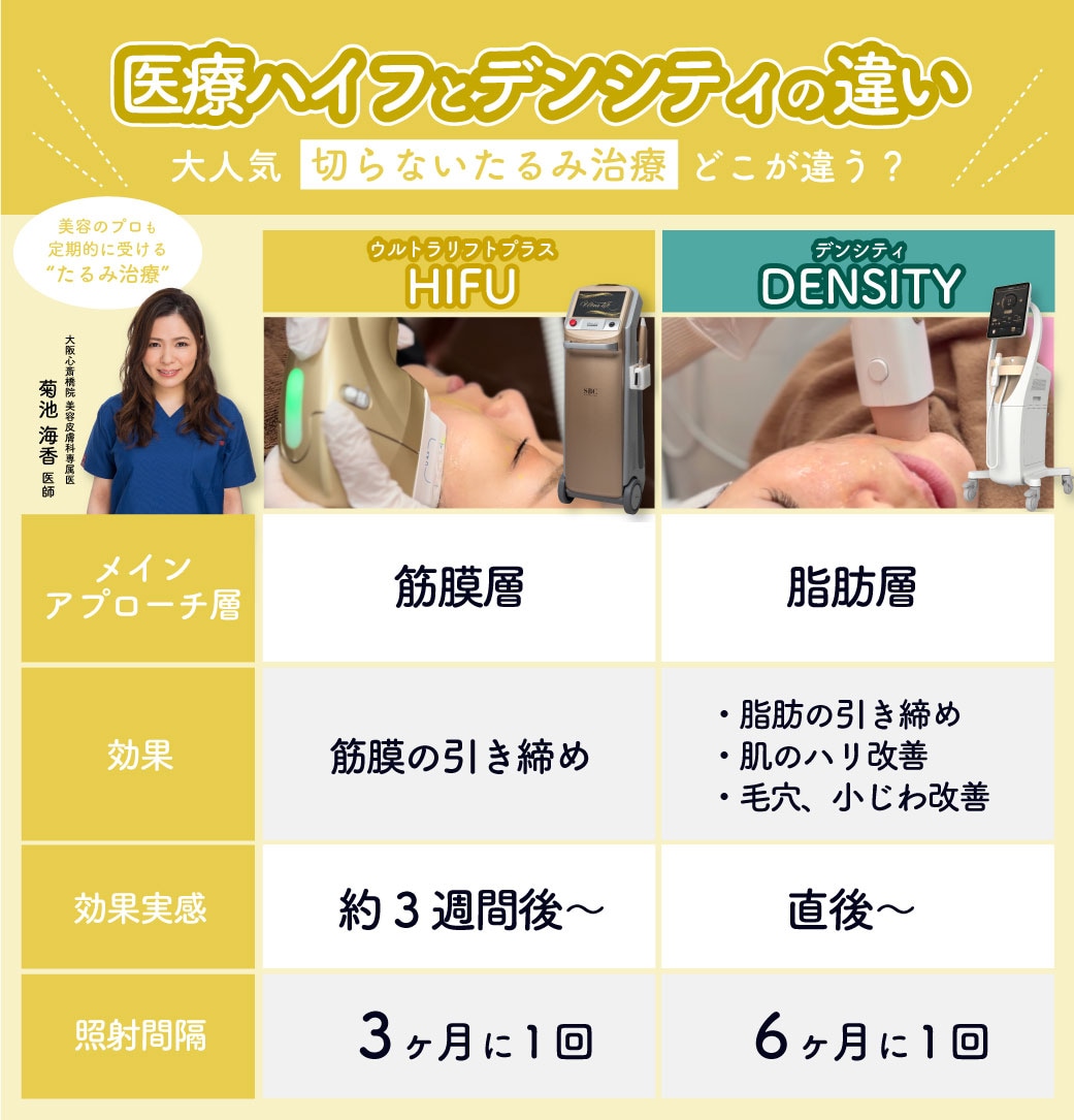 HIFUとDENSITYの違いって?-大阪心斎橋院で受けられる切らないたるみ治療 –