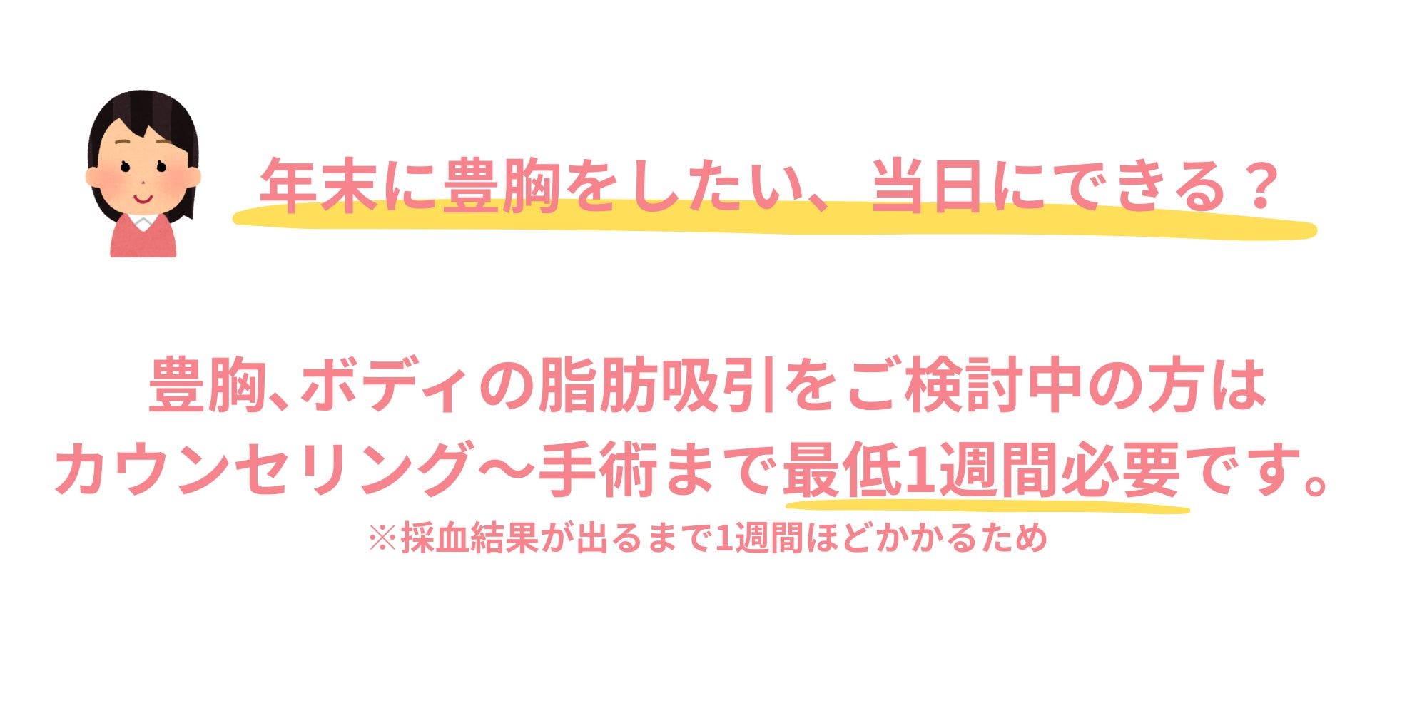 年末年始に豊胸、ボディの脂肪吸引をご検討中の方は採血が必要です。
