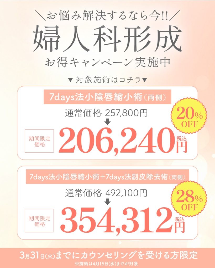 抜糸なし!婦人科形成術が最大28%OFFで受けられるお得キャンペーン実施中🉐✨