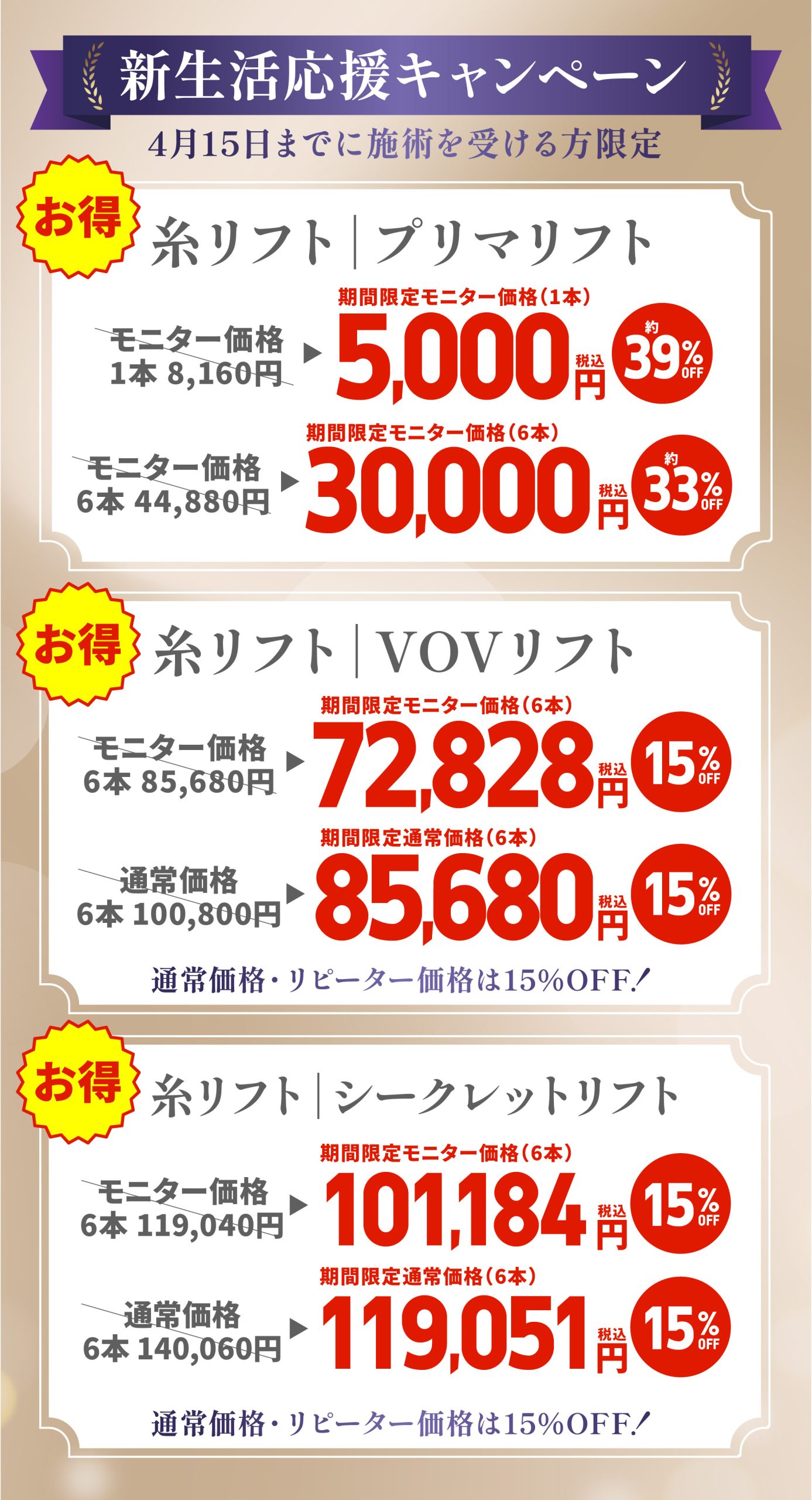 4月15日までに施術を受ける方限定なので