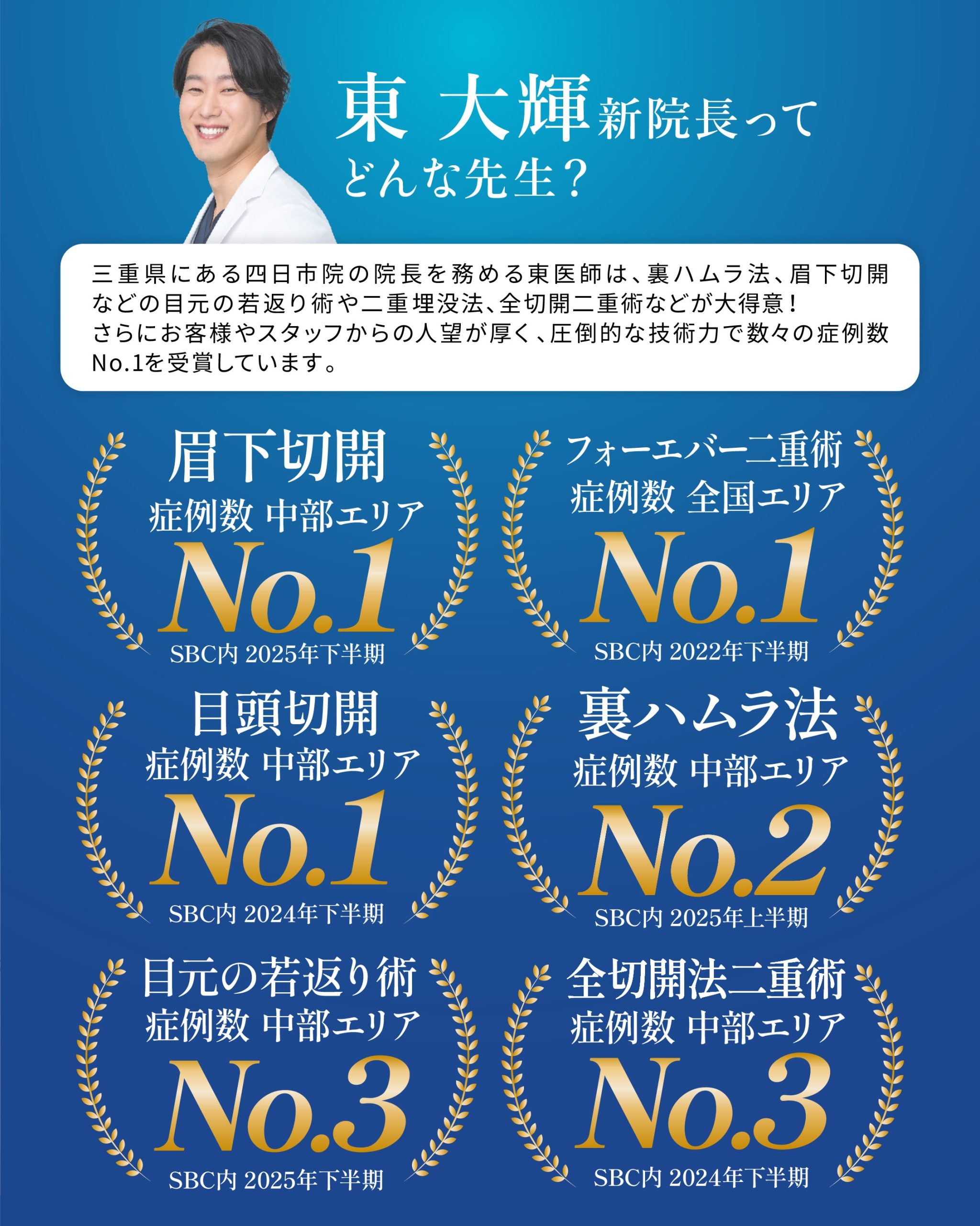 👑眉下切開 症例数 中部エリア No.1(SBC内 2025年下半期)