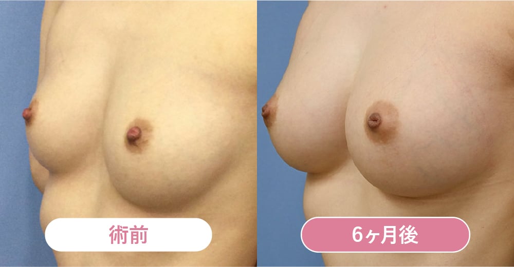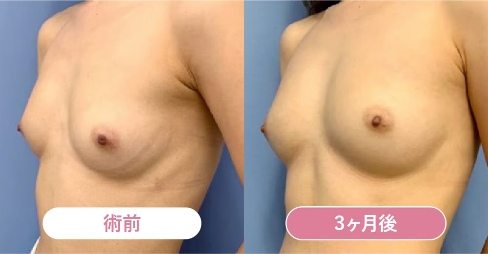 術後1週間ほどでバスト全体に内出血が見られますが、2週間〜1か月で目立たなくなります。腫れやむくみは2週間程度で引いていきます。