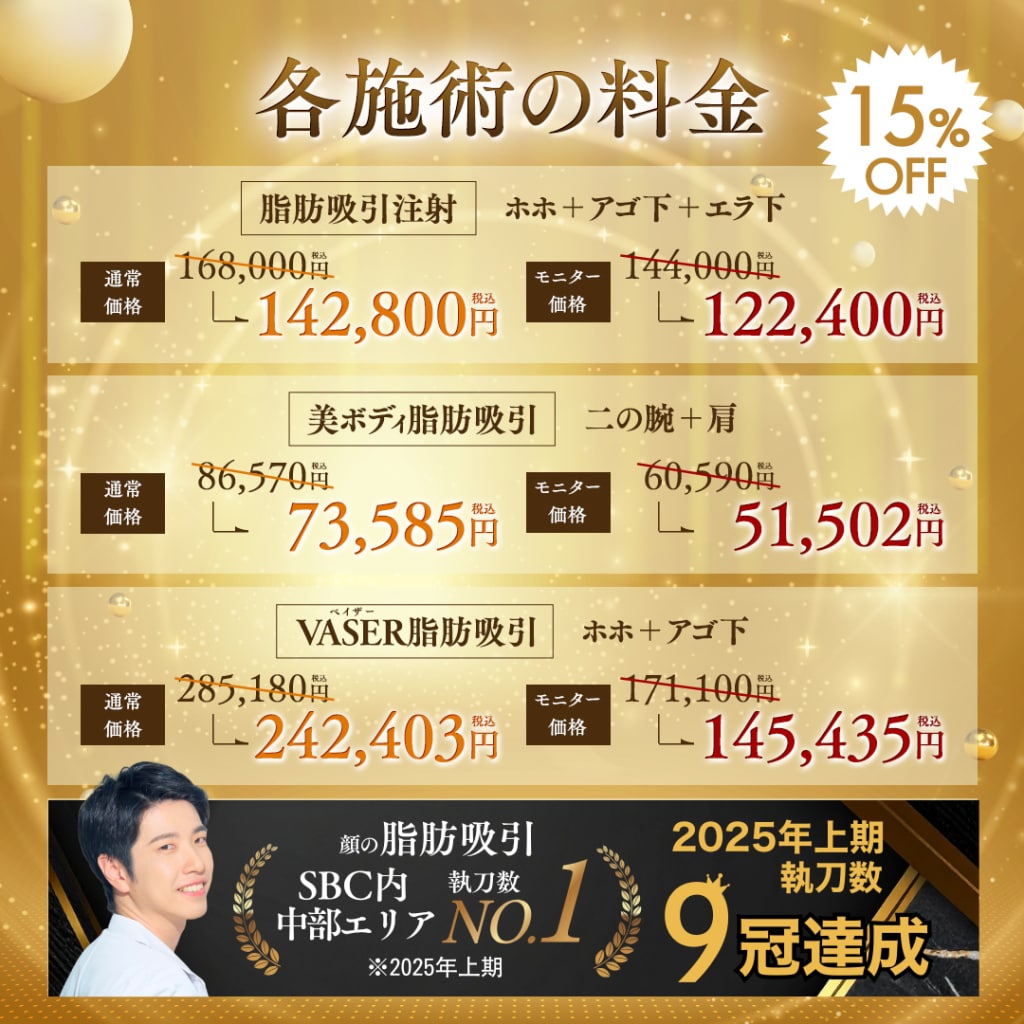 現在、脂肪吸引が15%OFFとなる大変お得なキャンペーンを実施中!
