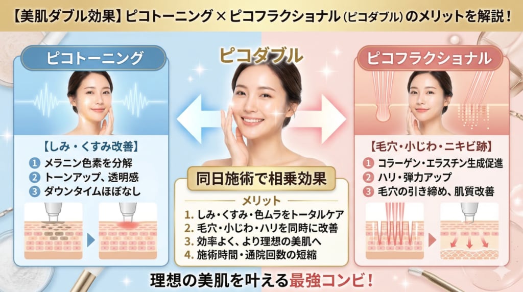 この2つを「同日施術」する「ピコダブル」が、なぜ「最強コンビ」と言われるのか…👇