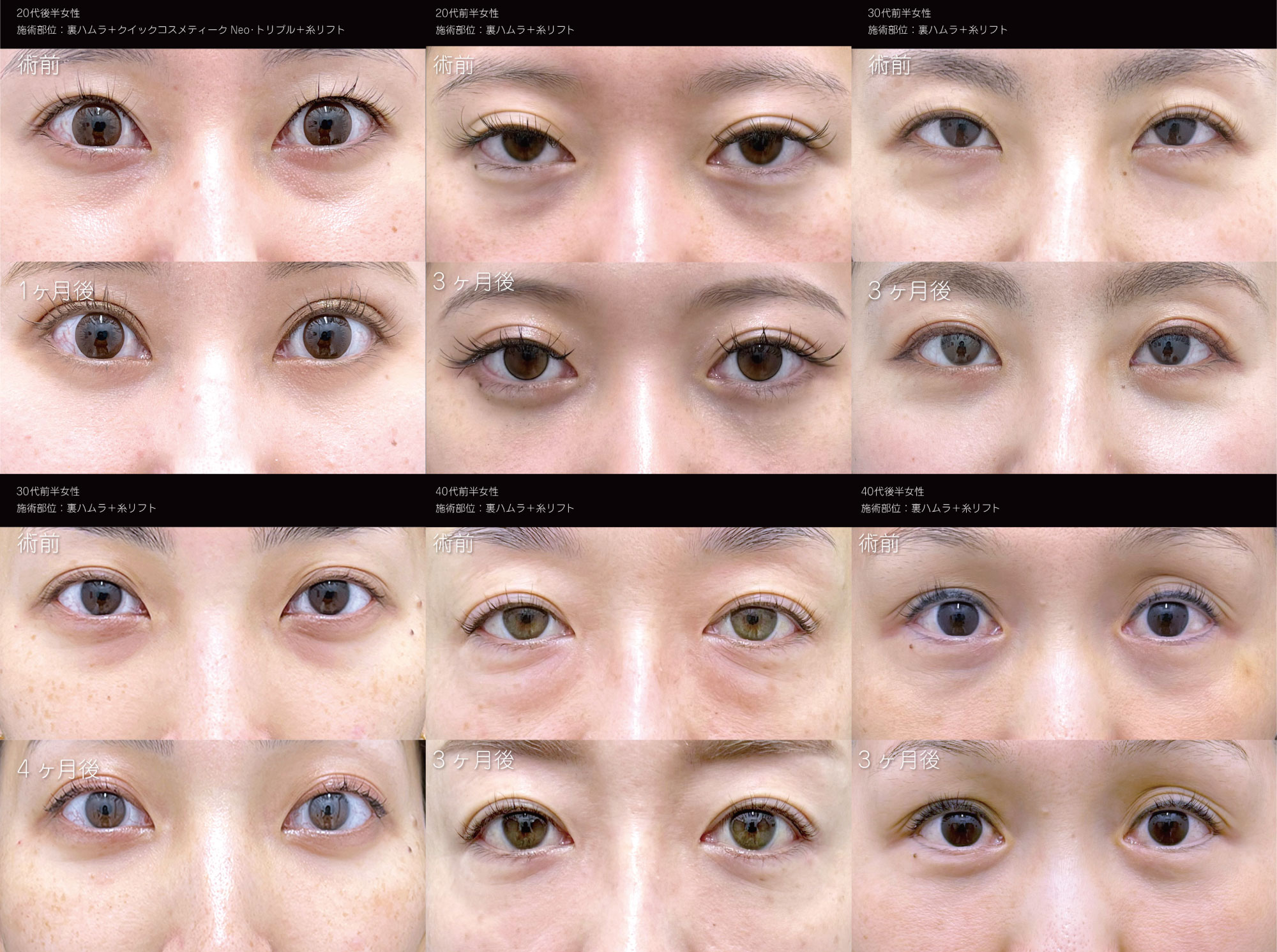 対象施術:目の下の切らないクマ取り・たるみ(ふくらみ)取り/裏ハムラ法