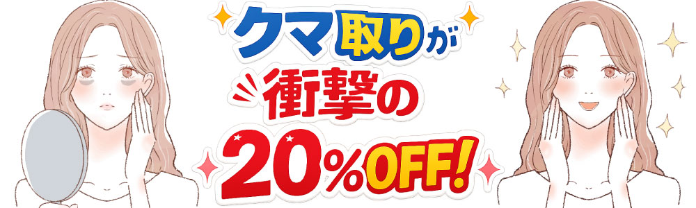 現在、期間限定でクマ治療が20%OFFとなるキャンペーンを実施中。