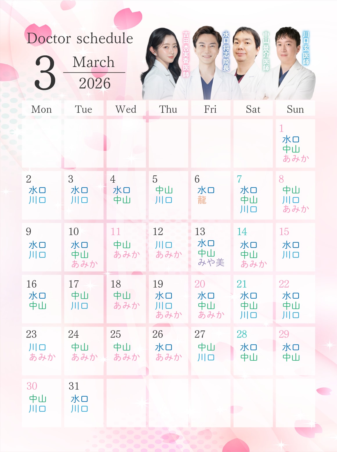 ⑥ドクター出勤カレンダー👨⚕️