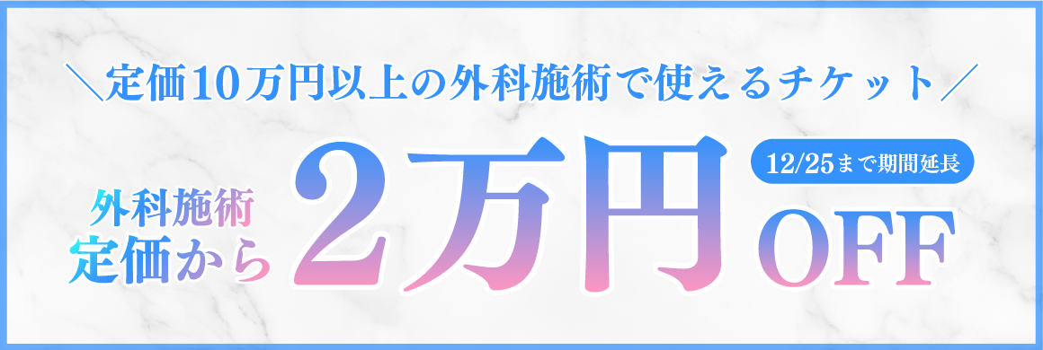 【お得なチケット】12月25日まで期間延長!定価10万円以上の外科施術で2万円OFFチケット🉐