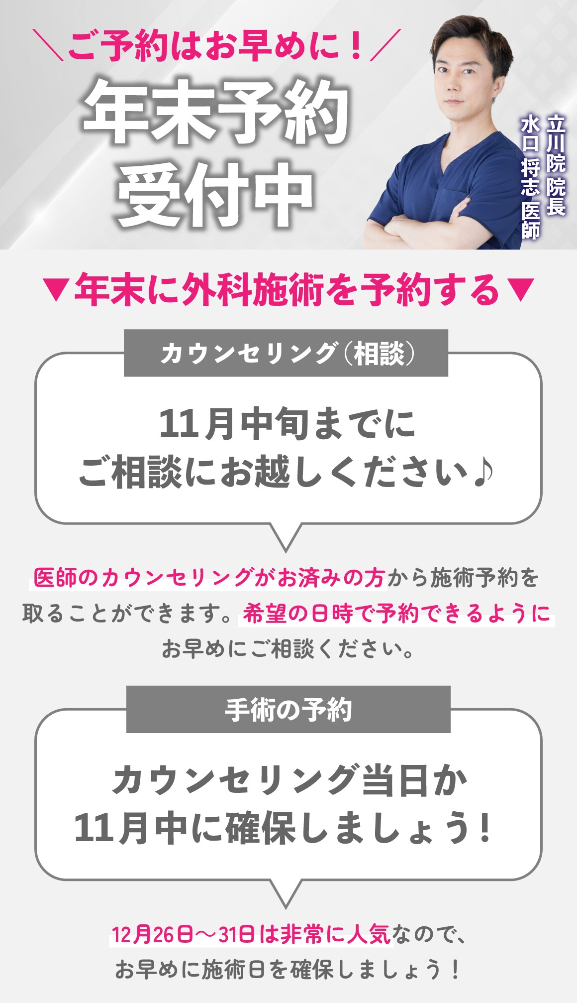 年末に外科施術をご希望の方はお早めにご相談ください!