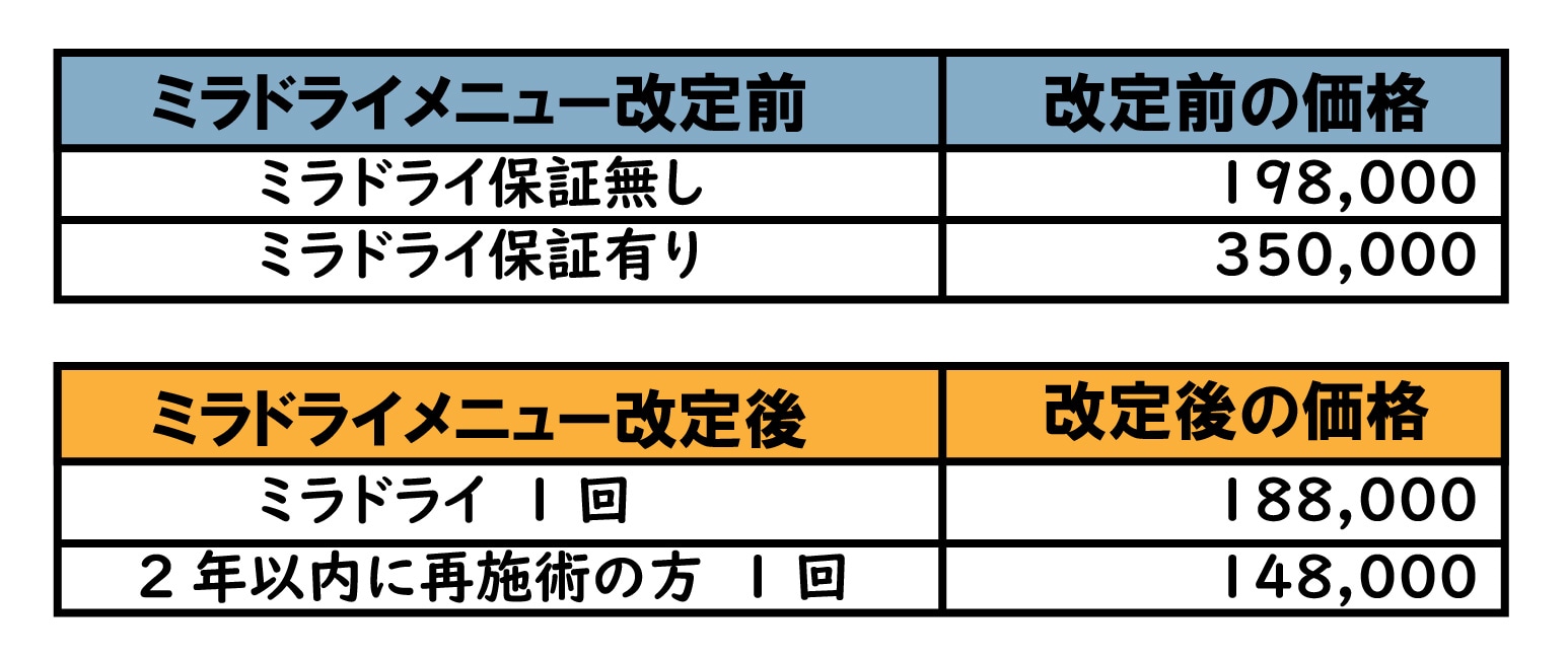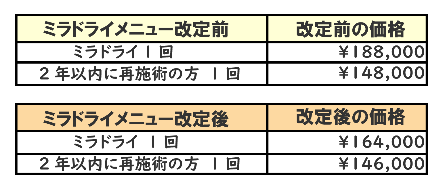 【価格改定】大人気施術のミラドライが価格改定しました!