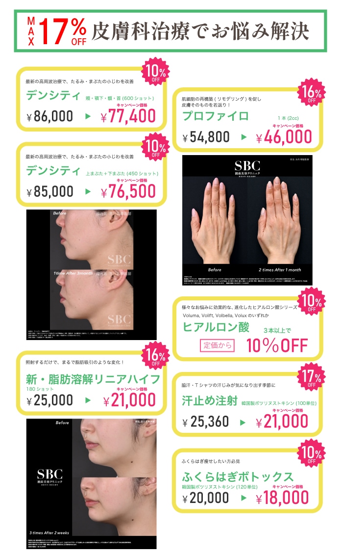SBCメディカルグループでは、2018年6月1日に施行された医療広告ガイドラインを受け、ホームページ上からの体験談の削除を実施しました。また、症例写真を掲載する際には施術の説明、施術のリスク、施術の価格も表示させるようホームページを全面的に修正しております。当ホームページをご覧の患者様、お客様にはご迷惑、ご不便をおかけ致しますが、ご理解のほどよろしくお願い申し上げます。