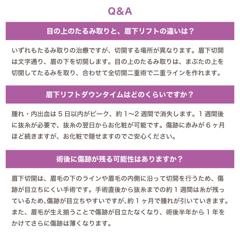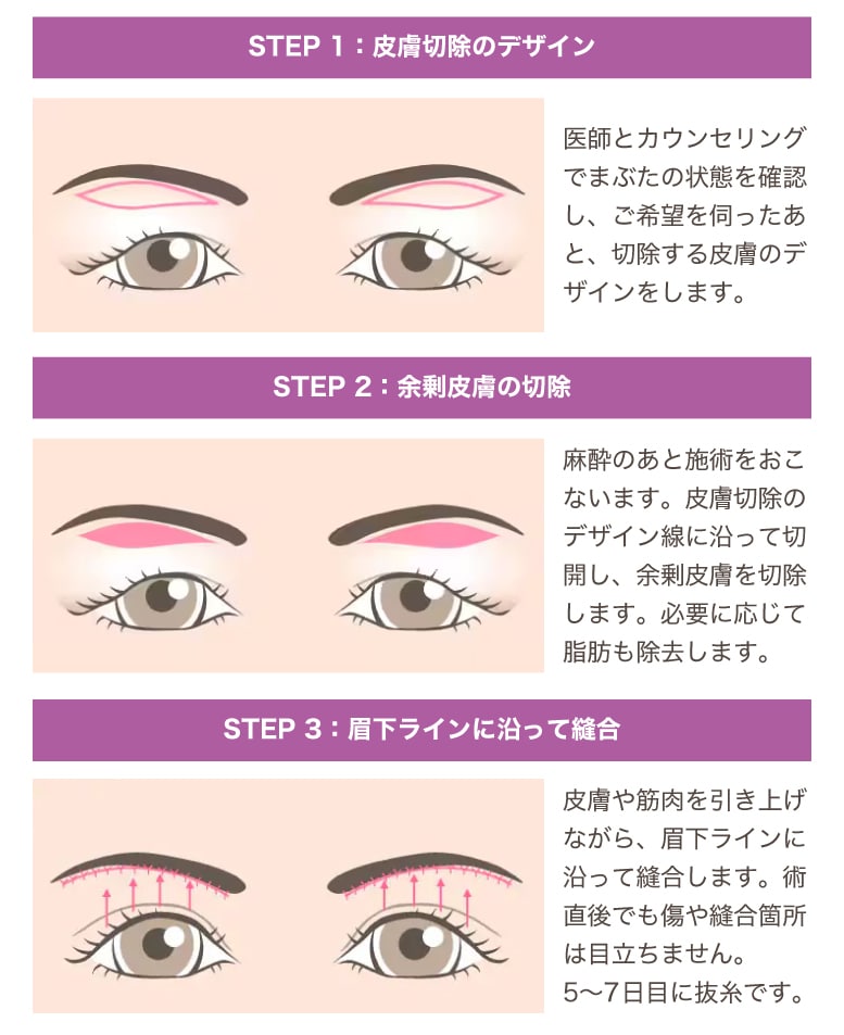 眉下リフト(眉下切開)はまぶたのタルミ・厚ぼったさを整形感なく自然に改善できる優れた手術です。