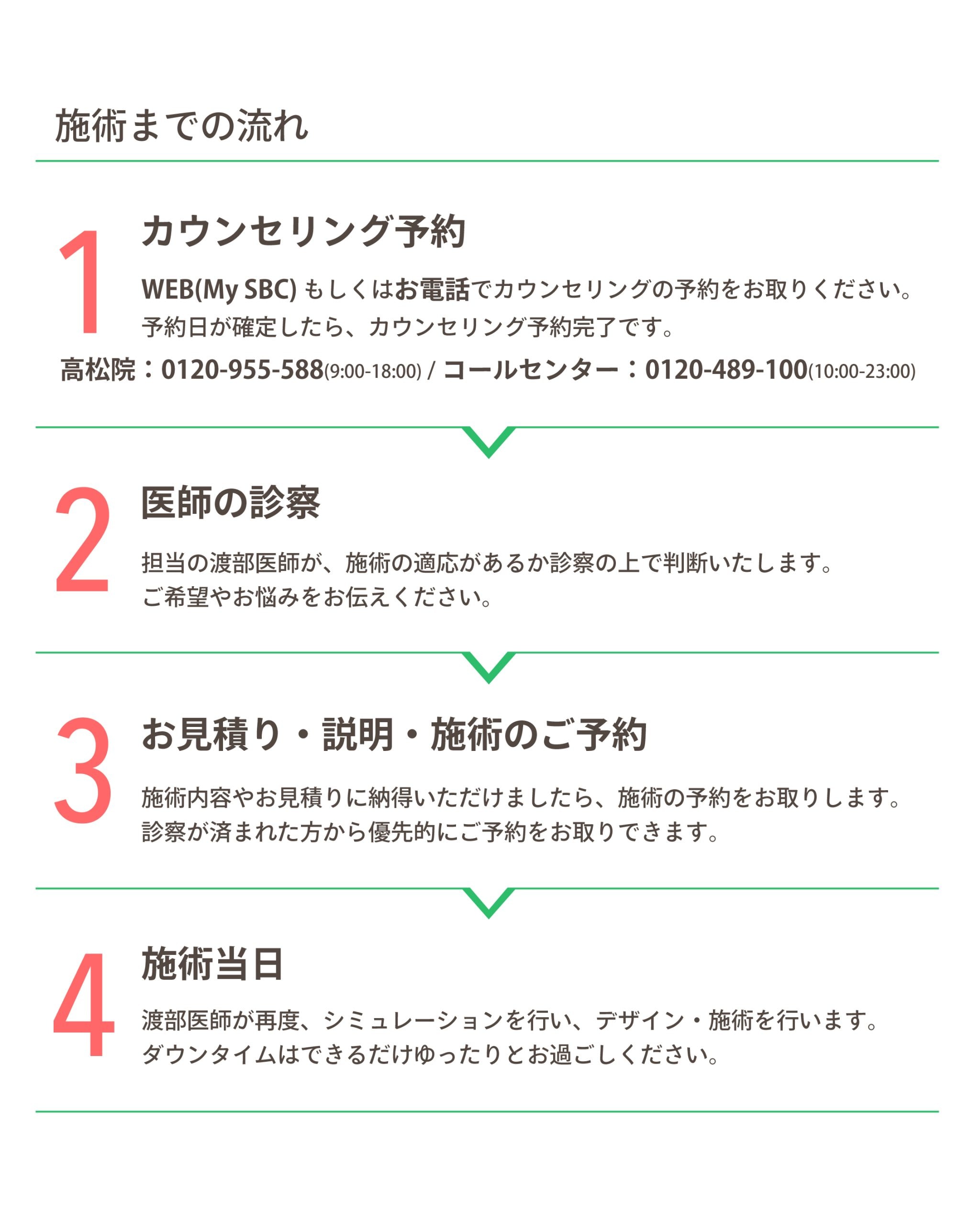 SBCメディカルグループでは、2018年6月1日に施行された医療広告ガイドラインを受け、ホームページ上からの体験談の削除を実施しました。また、症例写真を掲載する際には施術の説明、施術のリスク、施術の価格も表示させるようホームページを全面的に修正しております。当ホームページをご覧の患者様、お客様にはご迷惑、ご不便をおかけ致しますが、ご理解のほどよろしくお願い申し上げます。