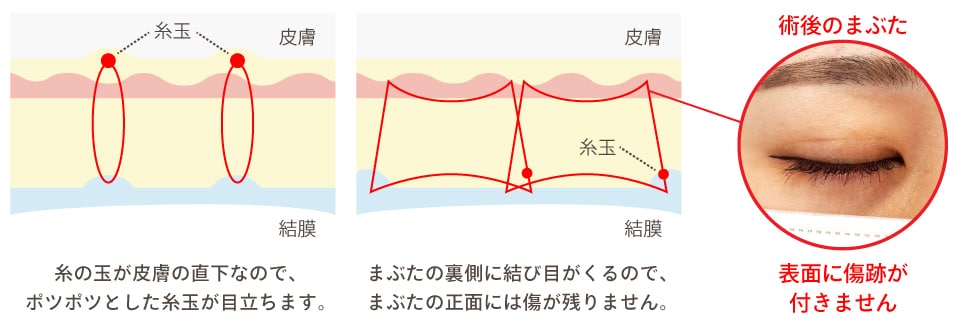 埋没法は繰り返すと※瘢痕化(はんこんか)、眼瞼下垂のリスクがありますので