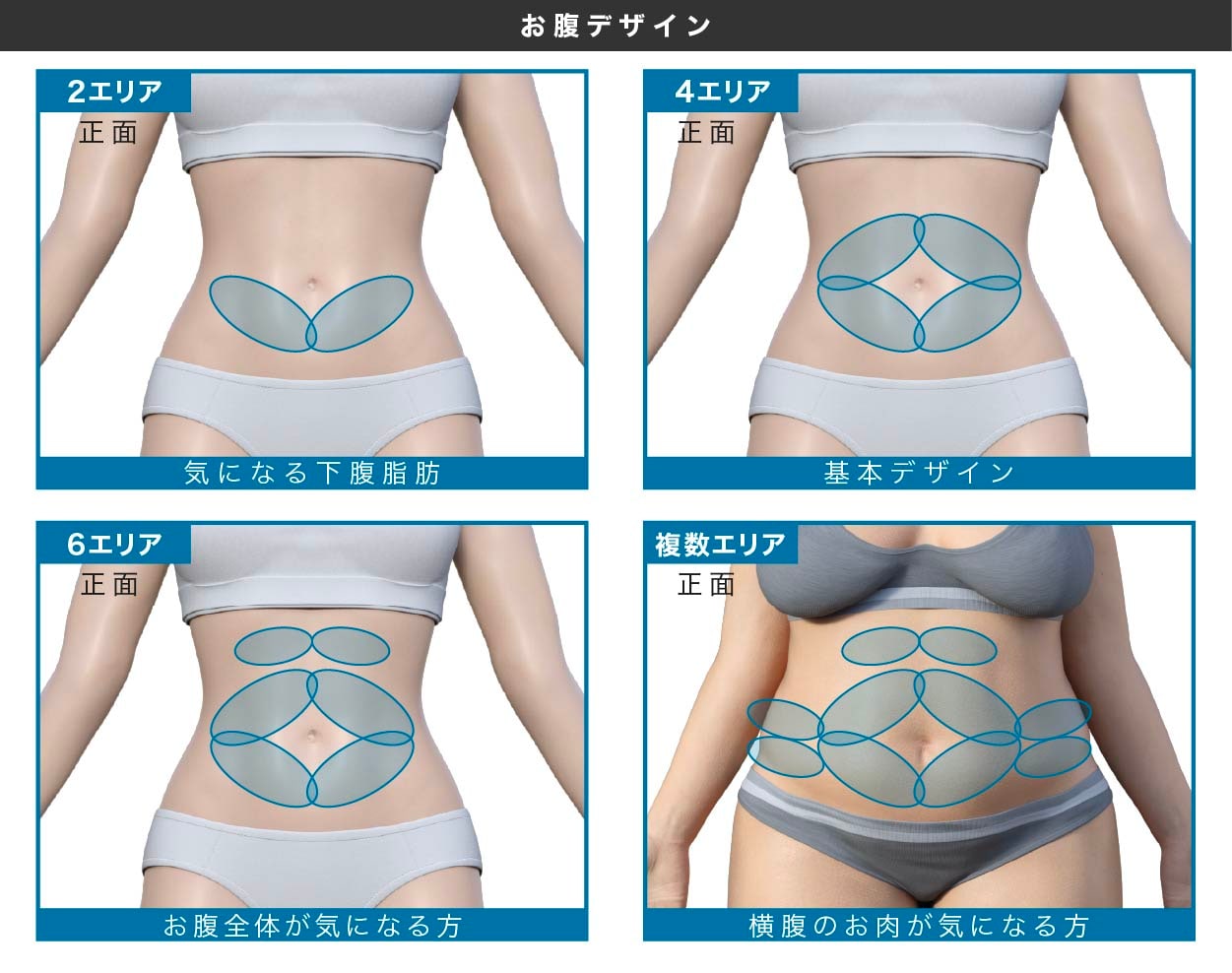 クルスカダブルはお好きなエリアを10エリア選ぶことができ、全体的に痩せることも、どこかの部分集中的に痩せることも目指せます✨