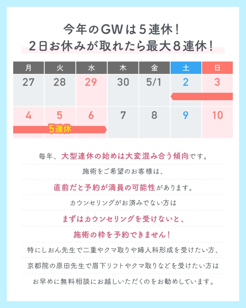 痩身、小顔治療、二重術、クマ取りなど幅広い施術を取り扱っております。