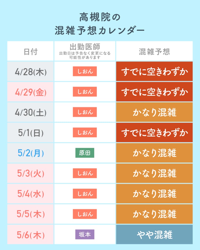AM9:30~PM6:30(最終カウンセリング予約PM5:00まで) ※休診日:第2・第3水曜日、不定休 |