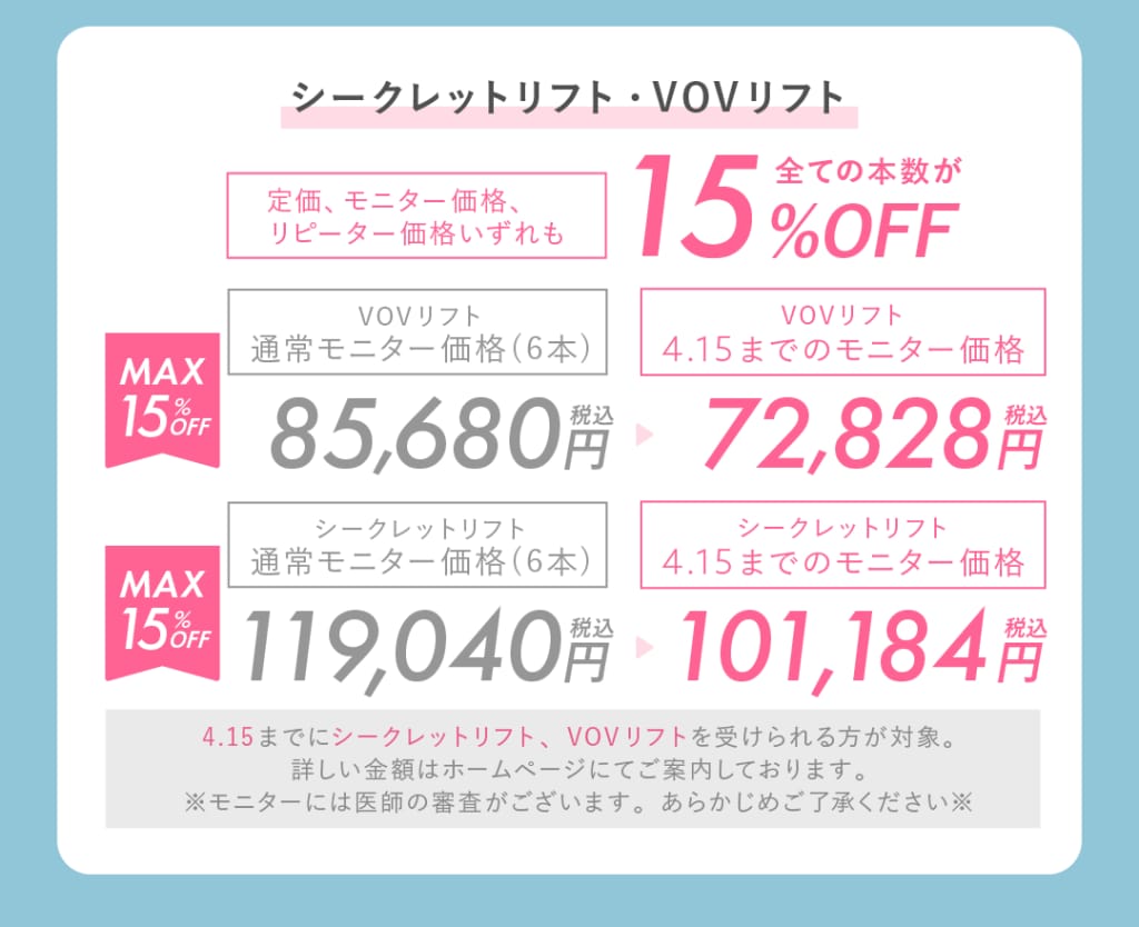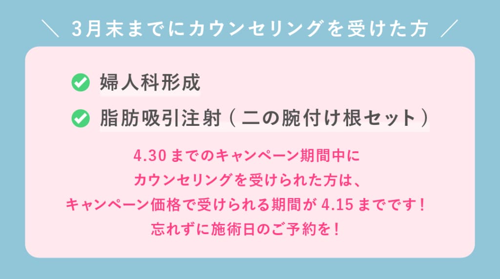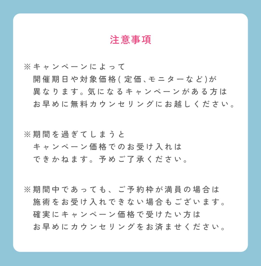 今回のキャンペーンは「期間中に対象施術を受ける方」が対象となります。