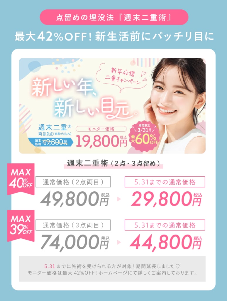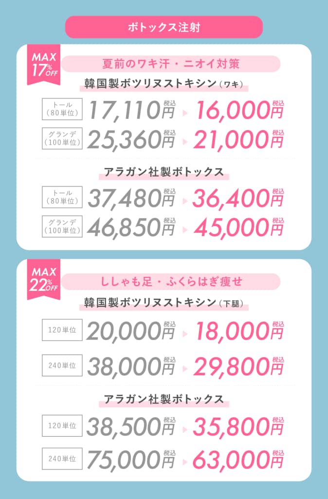 大人気の二重術や糸リフトはもちろん、夏に向けた汗・ニオイ対策も特別価格に!