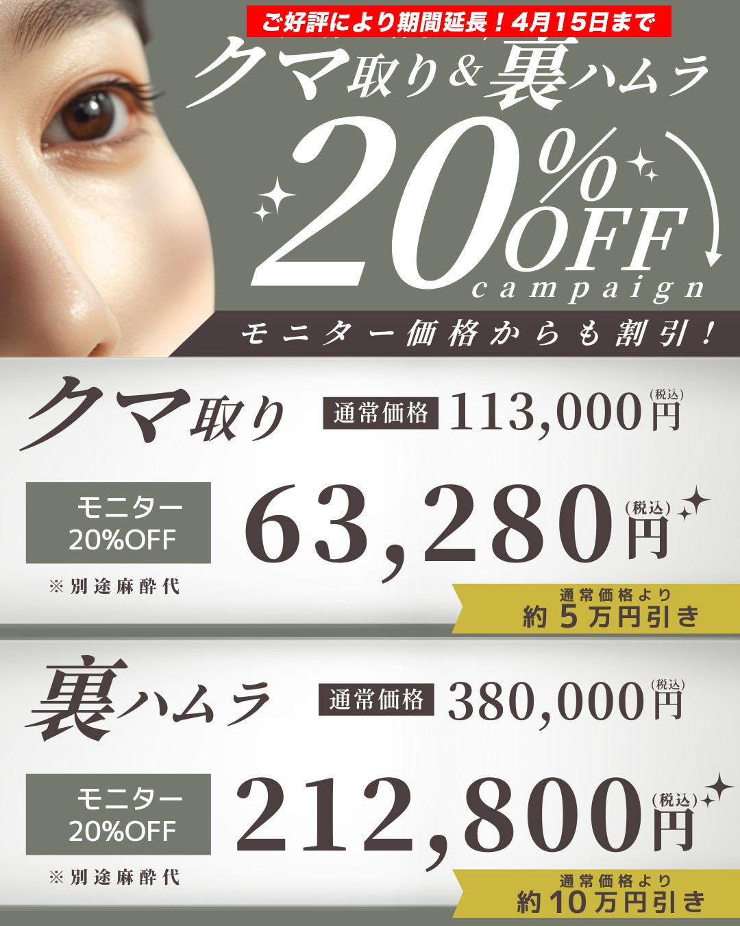 二重をはじめとする目元施術が今だけ限定価格!