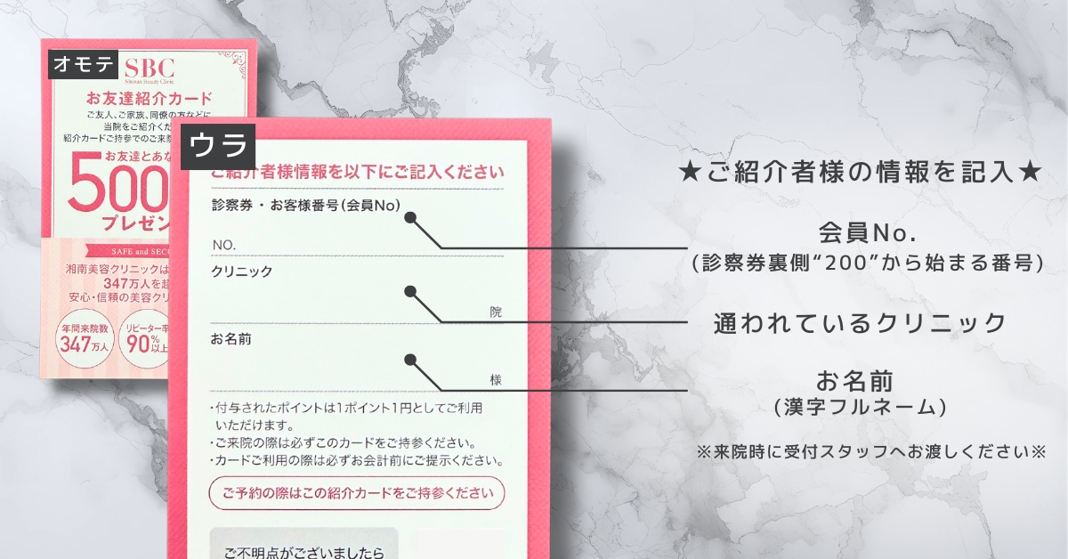 紹介カードは、湘南美容クリニックを初めてご利用される方をご紹介いただくための制度です。
