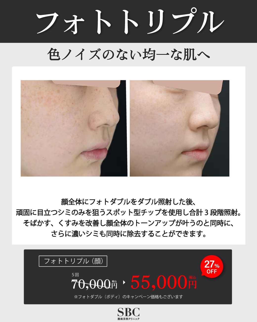 頑固に目立つシミのみを狙うスポット型チップを使用し合計3段階照射。