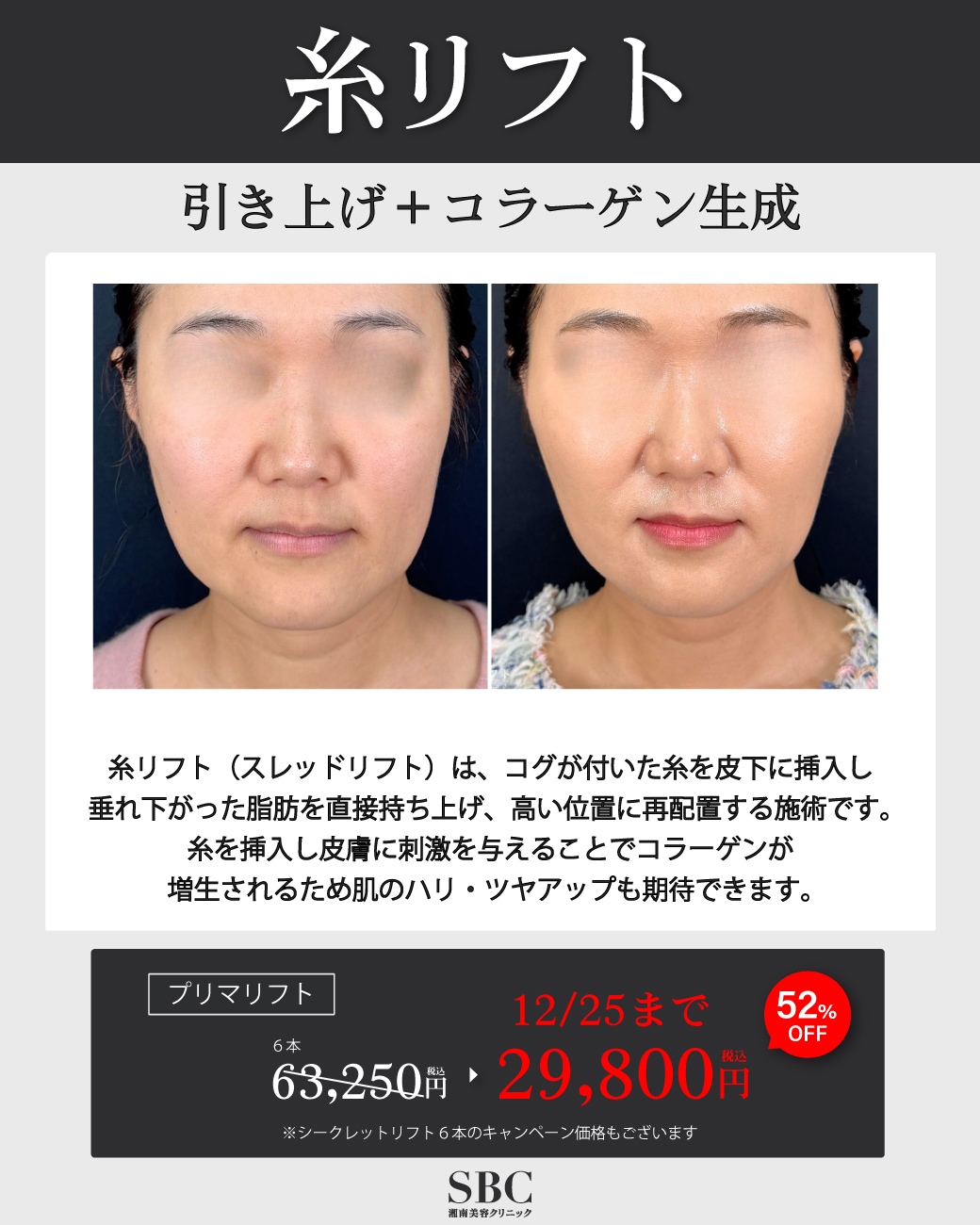 糸リフト(スレッドリフト)は、コグが付いた糸を皮下に挿入し