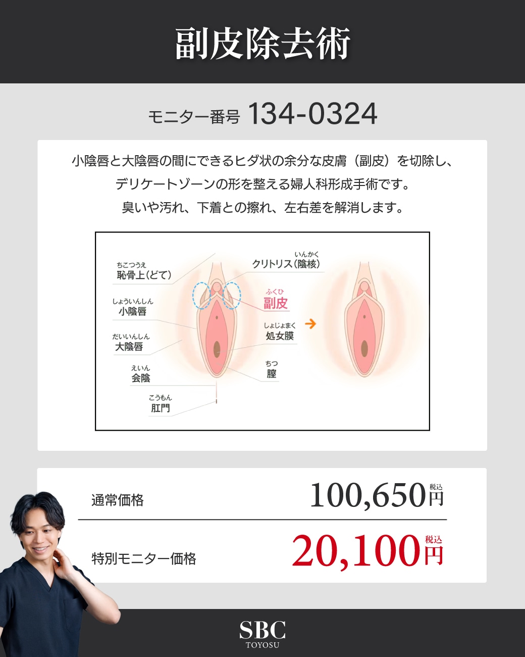 臭いや汚れ、下着との擦れ、左右差を解消します。