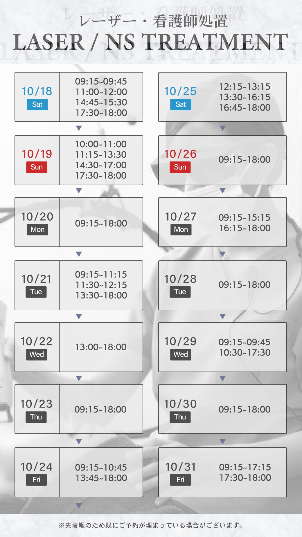 【レーザー】看護師処置の空き状況
