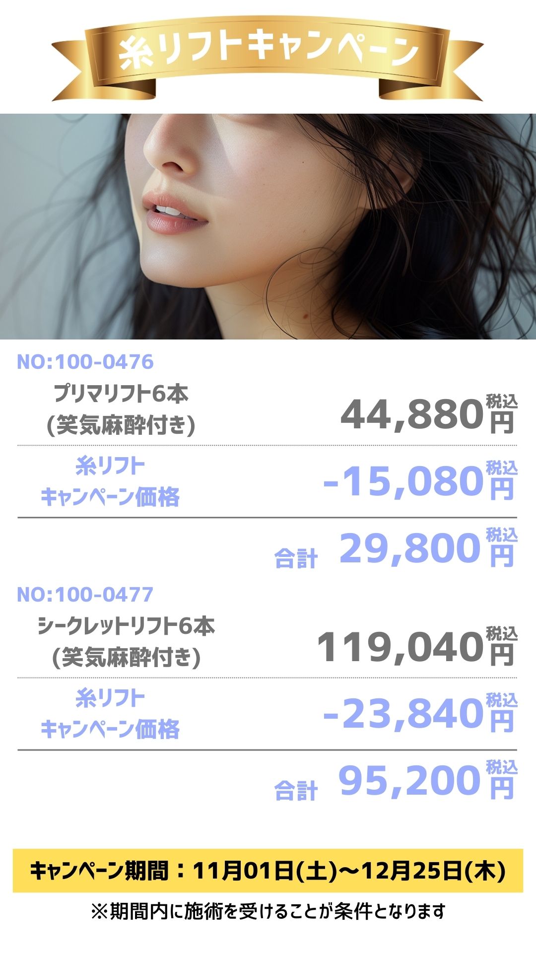 痩身、小顔治療、二重術、クマ取りなど幅広い施術を取り扱っております。