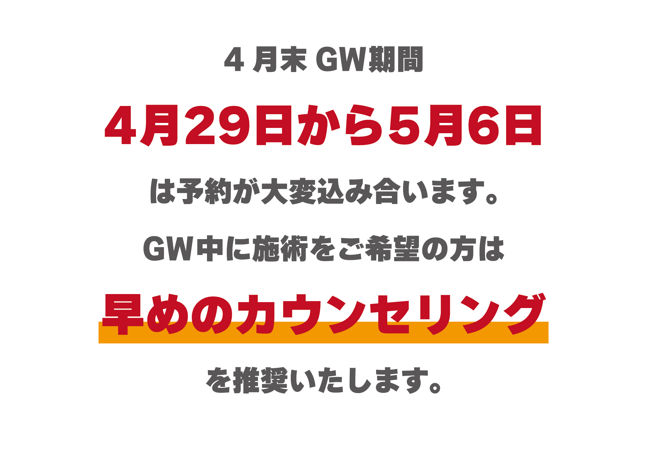 AM10:00~PM7:00(最終カウンセリング予約/17:30) ※年中無休 |