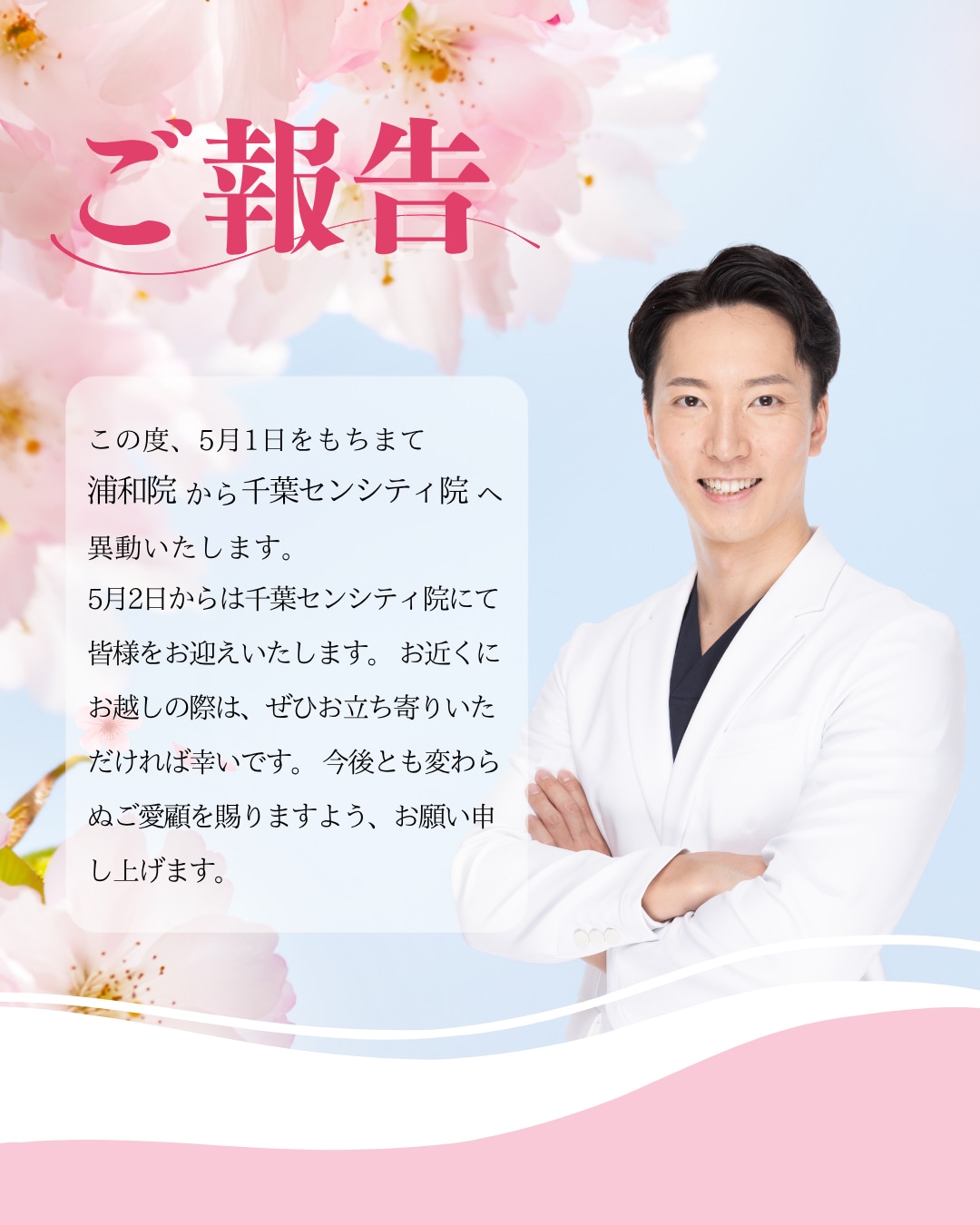 この度、金谷先生は5月1日をもちまして千葉センシティ院へ異動いたします!