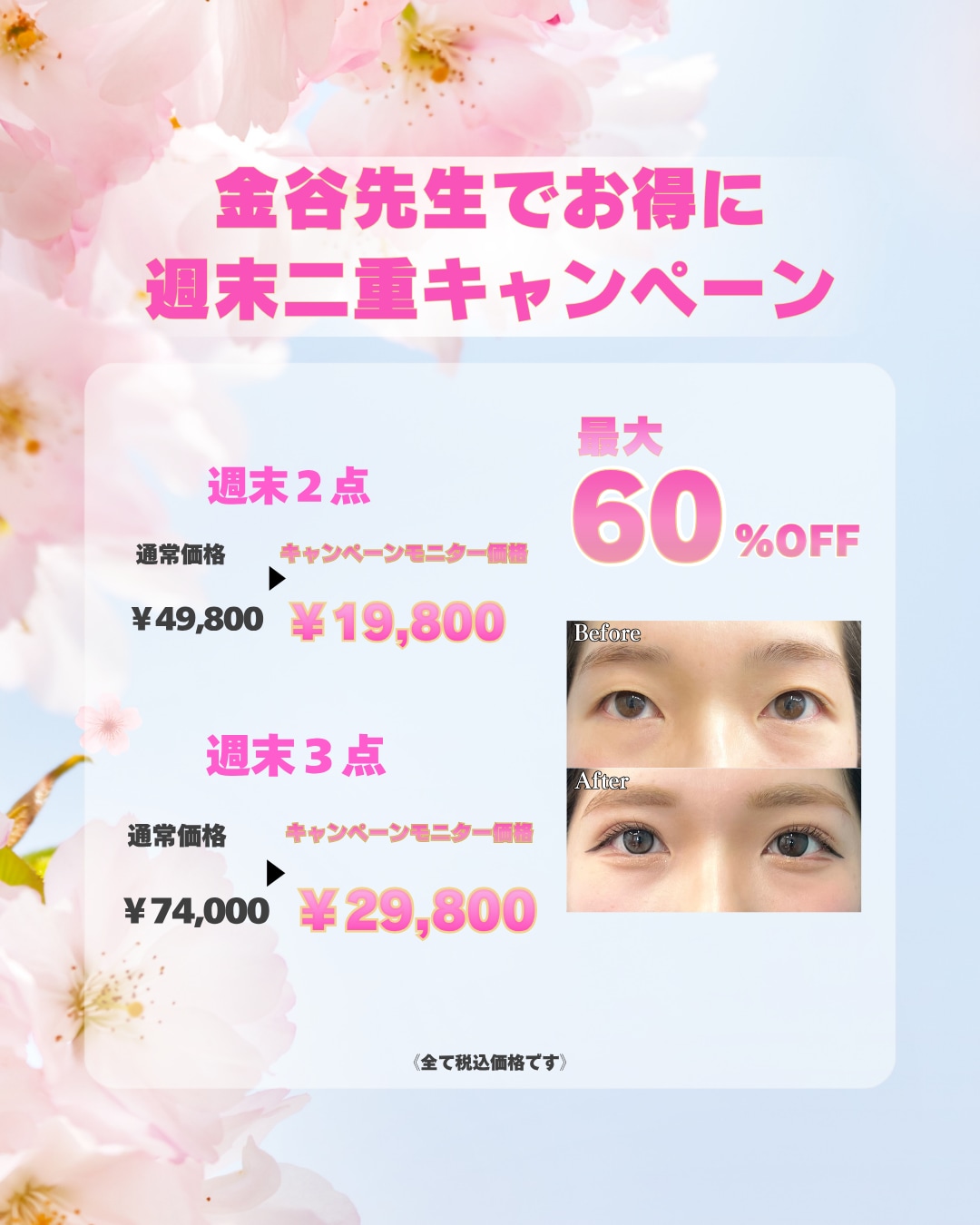 週末二重3点 通常価格¥74,000→キャンペーンモニター価格¥29,800