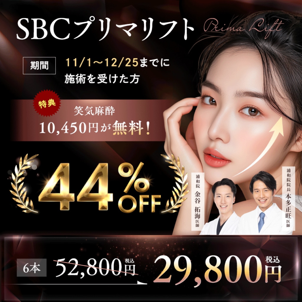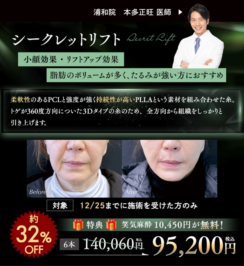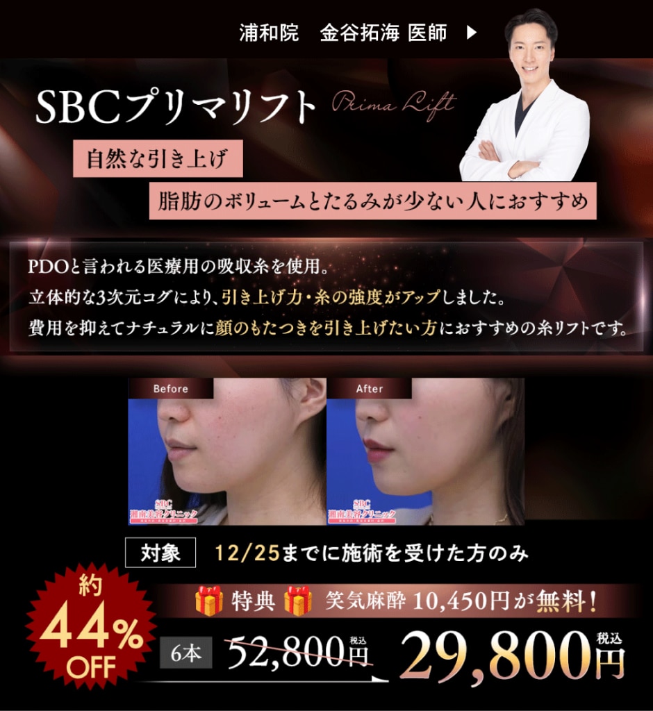 【赤字覚悟】麻酔代もプレゼント!糸リフト52,800円が29,800円!