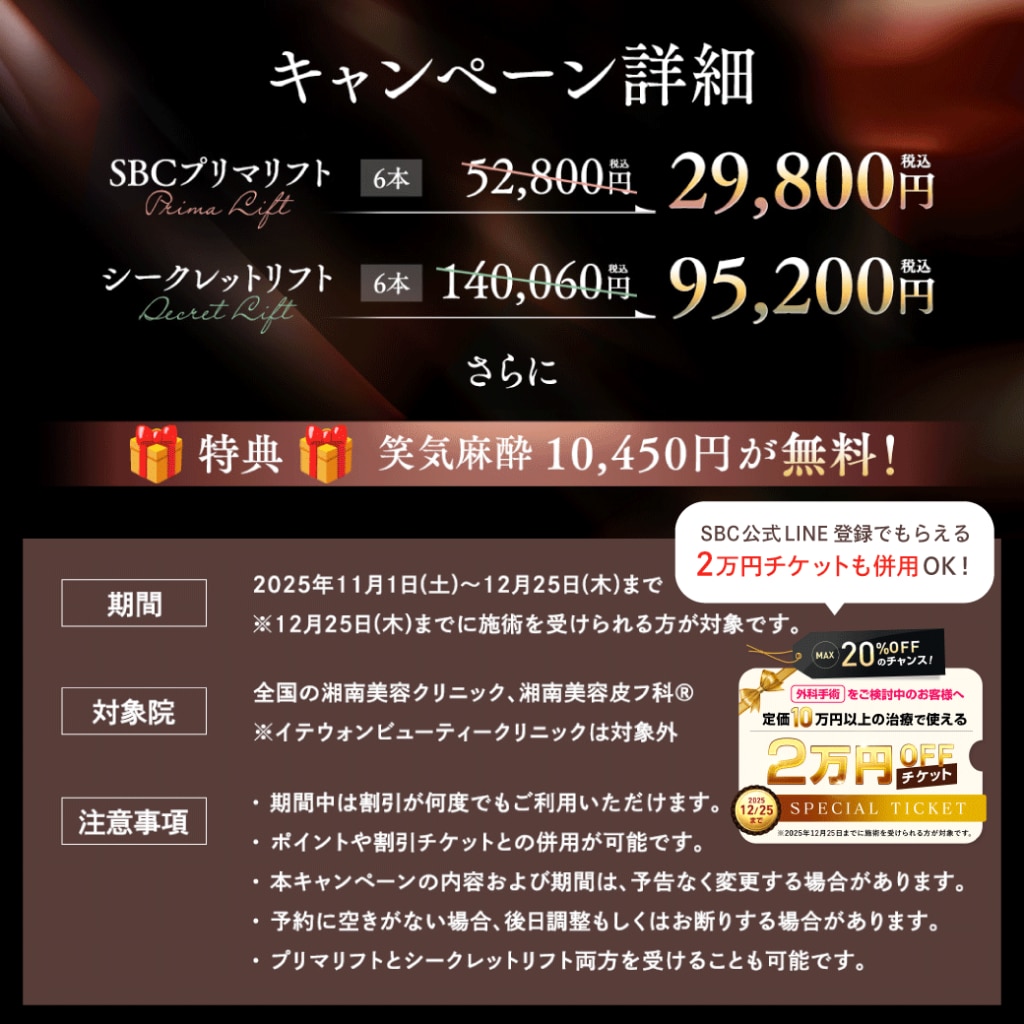 プリマリフト・シークレットリフトキャンペーンの併用で2万円OFFでご案内も可能!