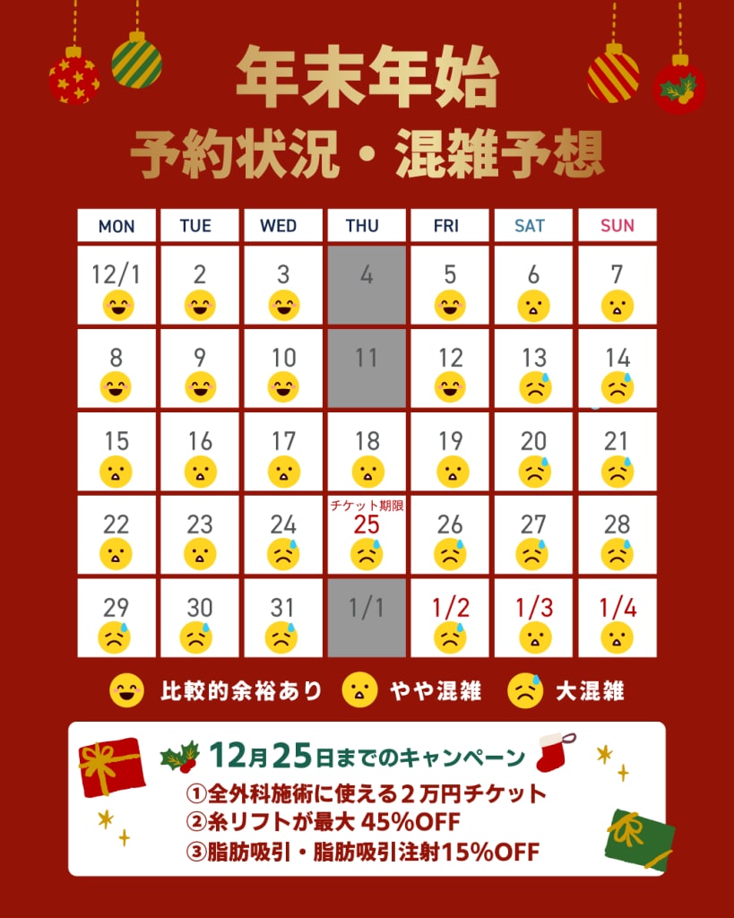 年末年始の休みは一年の中で最も手術予約が混雑する時期です!