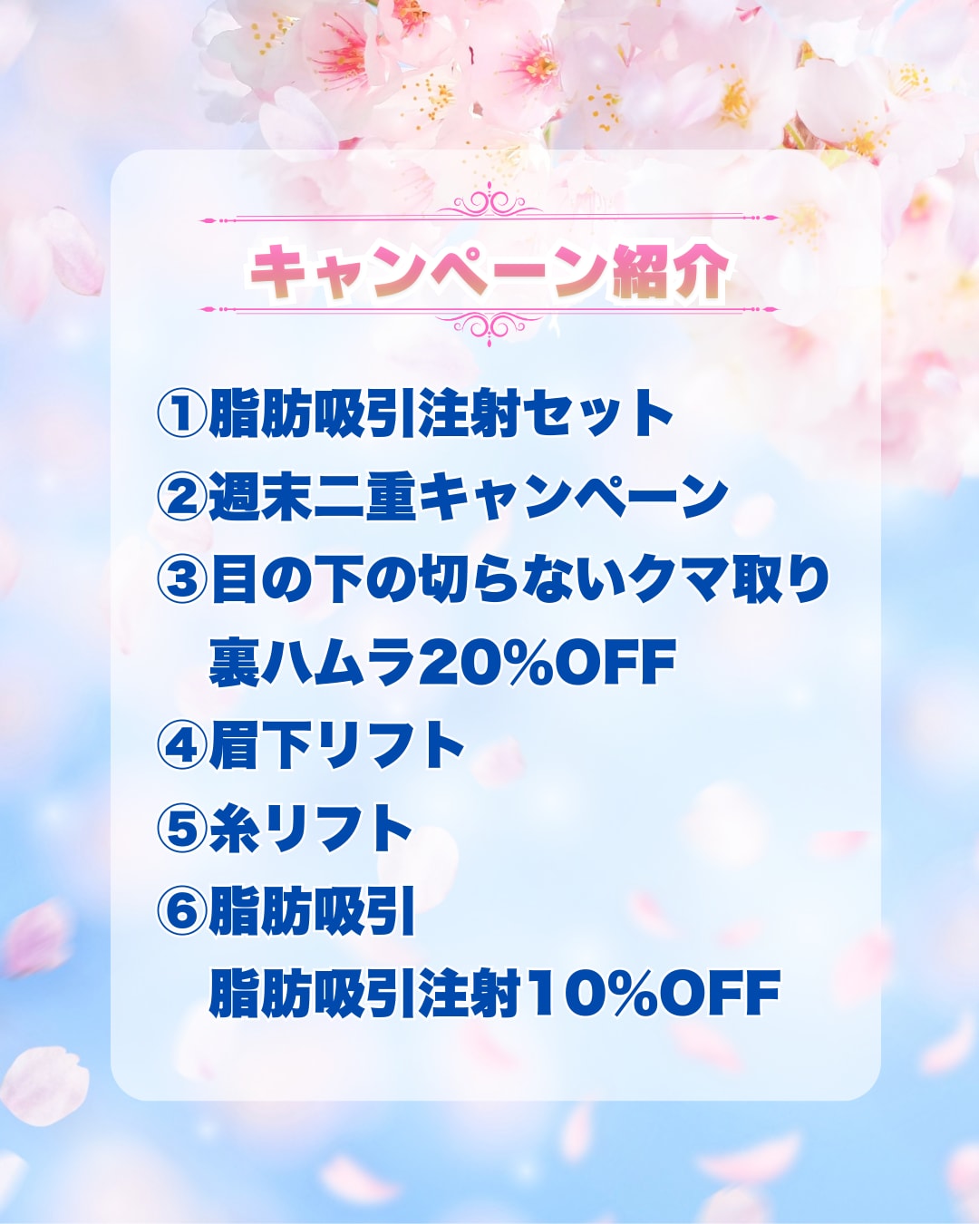 痩身、小顔治療、二重術、クマ取りなど幅広い施術を取り扱っております。