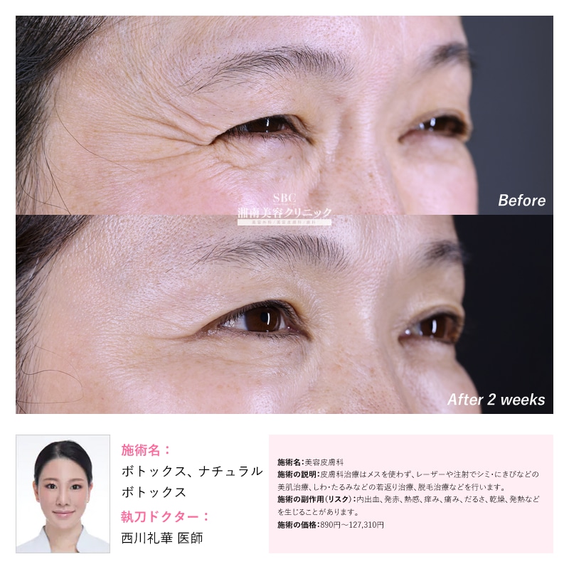 表情ジワにピンポイントで注射が可能なため、気になるしわをしっかり改善し、抑制することができます。