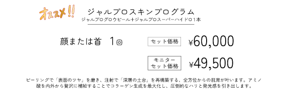 セットメニューでも登場しております、「ジャルプロ」や保湿効果の高い「イオン導入」との同時の施術がおすすめです!